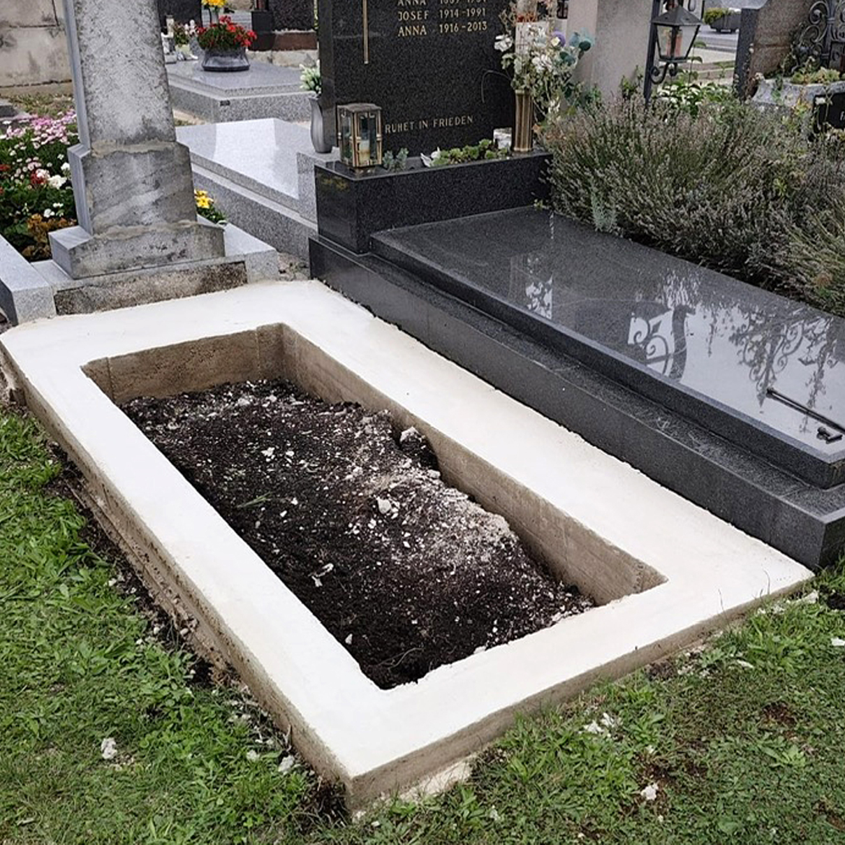 Wir setzen Fundamente präzise und langlebig, damit die Grabanlage auch nach vielen Jahren stabil bleibt. Unsere Arbeiten erfüllen alle geltenden Sicherheitsstandards und sorgen für eine dauerhaft sichere Basis.