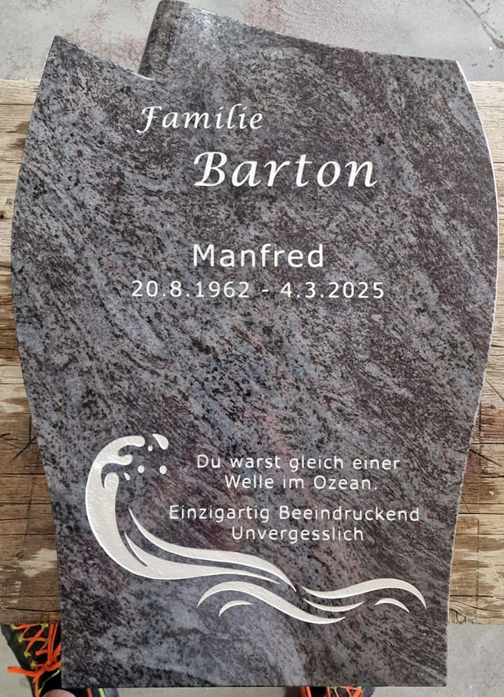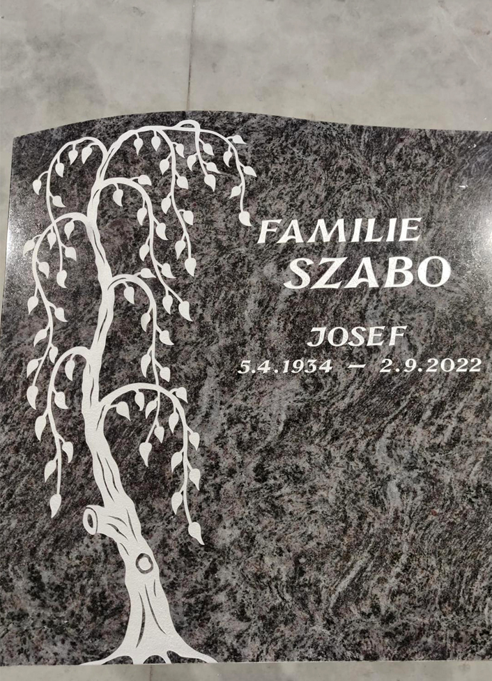 Wir fertigen Gravuren mit höchster Genauigkeit. Ob klassisch oder modern, jede Schrift wird nach Ihren Wünschen umgesetzt und sorgfältig in den Stein eingearbeitet. Auch Symbole oder Ornamente können integriert werden, um die Bedeutung zu verstärken.